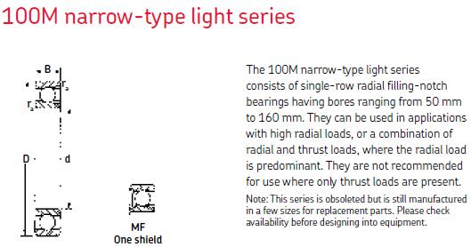MRC 126M深溝球軸承尺寸為:內徑:130mm,外徑:205mm,厚度:34mm,類型:100M窄型輕系列深溝球軸承,油潤滑參考轉速:2800轉/分鐘,脂潤滑參考轉速:2300轉/分鐘,精度等級:ABEC-1,產地:美國。