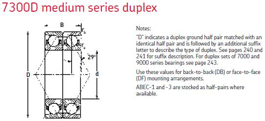 MRC 7304-D角接觸球軸承尺寸為:內徑:20mm,外徑:52mm,厚度:30mm,類型:7300-D中載系列配對使用角接觸球軸承,油潤滑參考轉速:14000轉/分鐘,脂潤滑參考轉速:10000轉/分鐘,精度等級:ABEC-1,產地:美國。