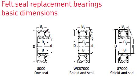 MRC WC87501球軸承尺寸為:內徑:12mm,外徑:32mm,厚度:12.7mm,類型:毛氈密封更換軸承球軸承,油潤滑參考轉速:轉/分鐘,脂潤滑參考轉速:15000轉/分鐘,精度等級:ABEC-1,產地:美國。